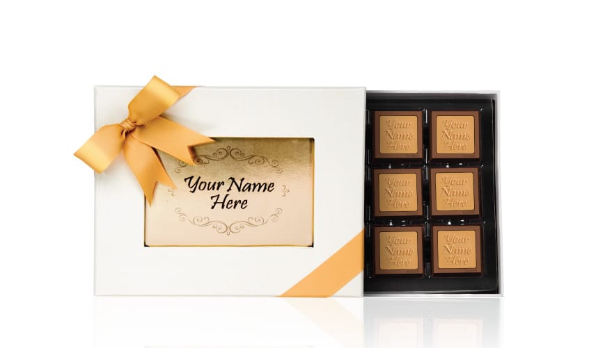 A generous and sophisticated gift box featuring 24 pieces of personalized chocolate—ideal for large gatherings, premium events, or branded gifting.