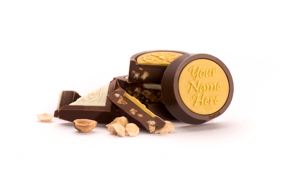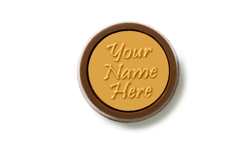 Simple shape, profound message. A smooth, round chocolate that you can personalize with a name, phrase, or a touching message in the colors of your choice. Not just chocolate—your words with a sweet taste.
