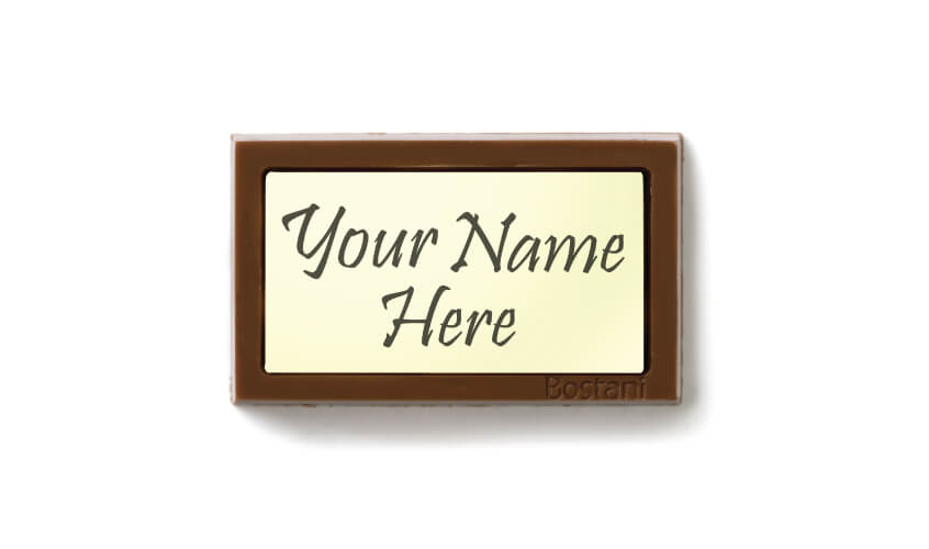 A practical design with more room for expression. Rectangular chocolates are ideal for long messages, personal names, or company logos. Choose the filling and color and add your own touch—perfect for corporate gifts or special occasions.