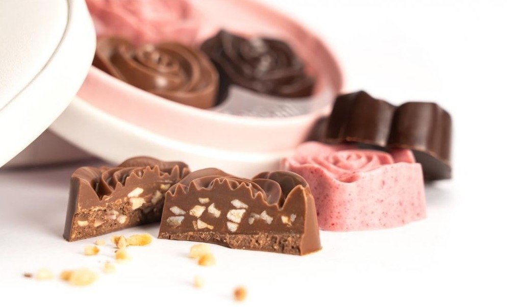 An elegant 45g box inspired by floral arrangements, containing 3 rose-shaped chocolates weighing 45 grams, with premium flavors including milk chocolate with hazelnut, dark chocolate with hazelnut, and white chocolate with berries. A distinctive harmony of luxurious taste and attractive design makes it an ideal choice for serving or gifting anytime.